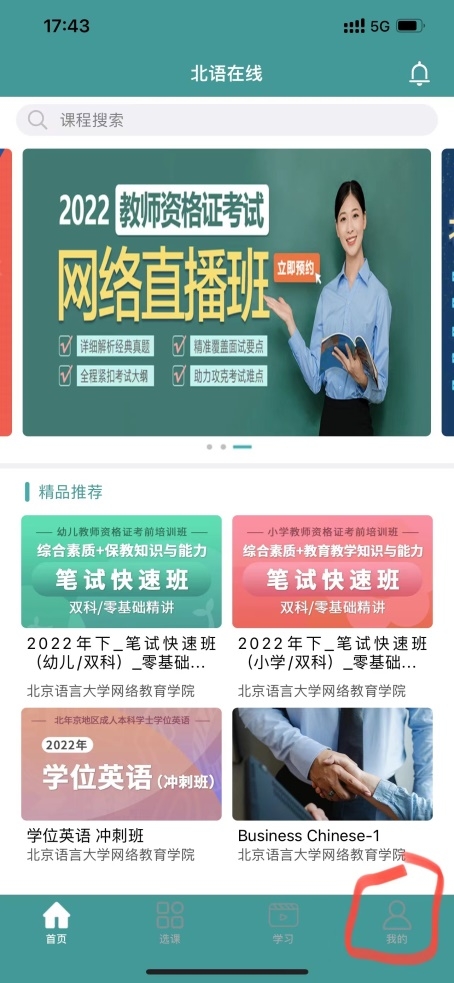 下载App北语在线,点击“我的”——“密码登陆”,输入账号:手机号+验证码 或 手机号+初始密码(初始密码为123456),选择下方“学习”按钮,点击“我的直播”——“即将开始”