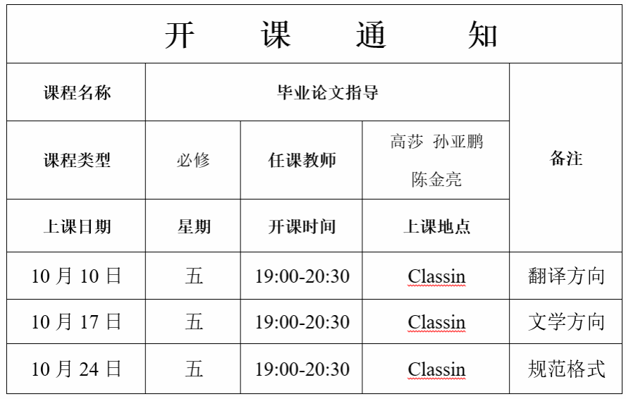 25-26学年第二学期英语专业《毕业论文指导》即将开课,涉及班级如下:
