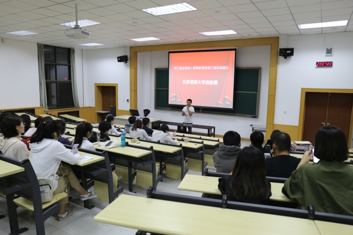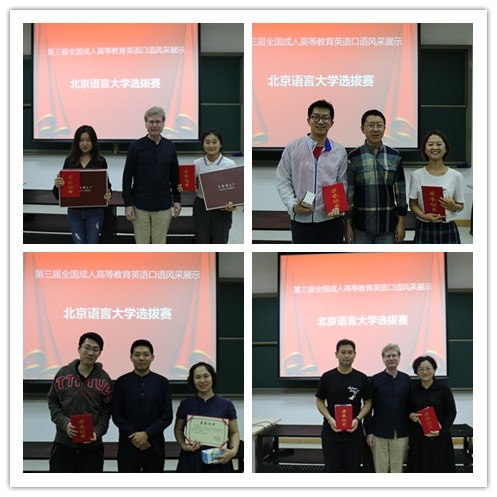 北京语言大学继续教育学院2018年9月20日组织了第三届全国成人高等教育英语口语风采展示初赛。比赛分层次进行,选手或通过自主报名,或通过班级推荐,最终评选20位同学参加初赛,通过激烈角逐,本科组和专科组共八位选手分获一等奖、二等奖、三等奖及优秀奖。