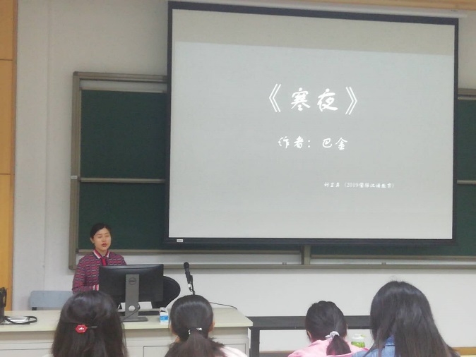 为激发同学们对中国现当代文学经典作品的阅读热情,促进同学们的研究性学习和课堂交流;2019年5月11日、18日上午10:00分别开展了《中国现当代文学》课堂“教学实践比赛”活动。参加比赛的选手分别来自于19级汉语言文学专业和19级汉语国际教育专业,选手们在王静老师的指导下,上台展示了他们精心准备的课堂教学环节。比赛结束后,王静老师进行了精彩的讲评,肯定了选手们认真的准备和良好的课堂教学设计意识,也针对选手们的不足提出了改进建议。